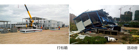 在目前的(de)發展中,我(wǒ)們在新聞上看到的都是臨時建築活動房的頻繁倒塌,在活(huó)動房(fáng)抗力小,遇地基不固的前提下(xià),產生出打包箱,它抗震8級、抗風11級、使(shǐ)用壽(shòu)命20年以(yǐ)上。