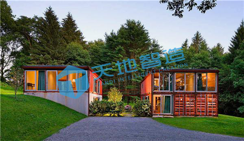 由7個集裝(zhuāng)箱上下(xià)疊加、左右延伸而(ér)成(chéng)的模塊化(huà)移動別(bié)墅,怡(yí)然自得,隱於市