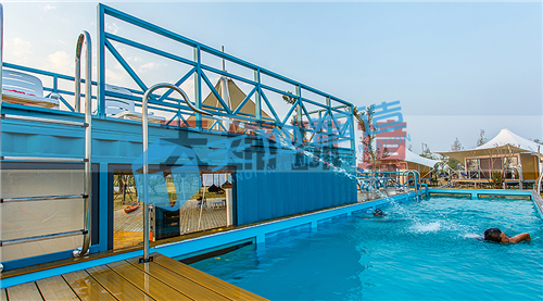 集裝箱改造(zào)泳池,帶有甲板,防水層及水過濾係統(tǒng),自由徜徉